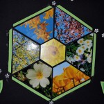 Voici une de mes pages de scrapbooking. C’est quelque chose que j’aime beaucoup, mais qui prend du temps. Faire les photos, par thèmes, c’est mieux et trouver une mise en page pour les mettre en valeur. Là, typiquement, j’aurais pu faire une fleur avec ses pétales, plutôt qu’un hexagone pour suivre le thème jusqu’au bout…